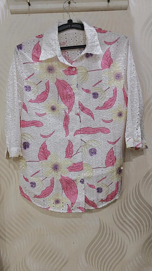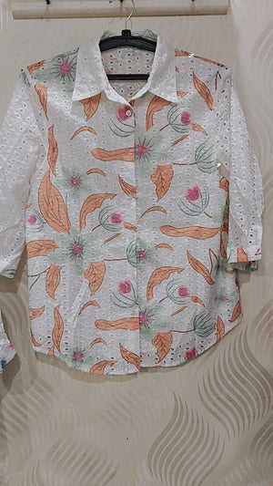 This summer, stay cool and stylish in our cotton chikenkari shirt. Made with intricate chiken embroidery, this shirt is a perfect blend of comfort and elegance. Keep up with the latest fashion trends while staying comfortable in this breathable fabric. Get 100% cotton comfort with a touch of traditional artwork.