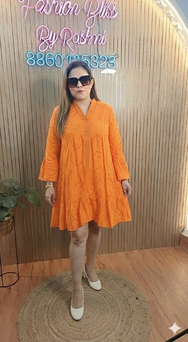 Stay cool and comfortable this summer with our premium cotton chikenkari dress. Crafted with lightweight fabric, this dress is perfect for any warm weather occasion. Enjoy the breathable and airy design, making it an ideal choice for those hot summer days.