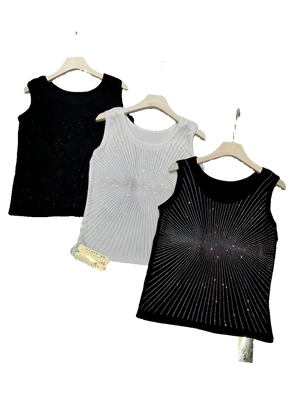 Available in a classic black and white or a touch of silver shimmer, you can find the perfect top to match your mood.