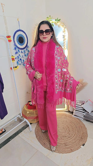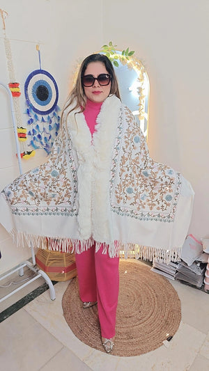 This winter embroidery stole/pochun features intricate embroidery, adding a touch of elegance and sophistication to your winter wardrobe. Crafted with precision and attention to detail, this stole showcases the expertise of our designers and the quality of our materials. Elevate your style with this beautiful accessory.