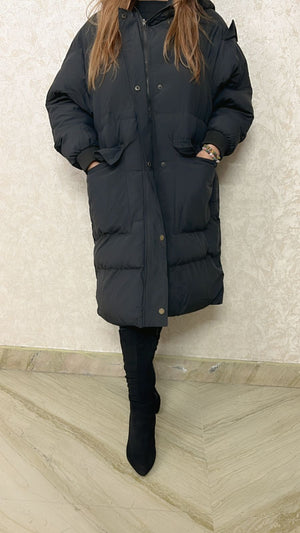 Stay warm and stylish this winter with our Winter Long Puffer Coat. With a hood for extra protection, this coat is perfect for cold and snowy days. Made to keep you warm and comfortable, it's the perfect addition to your winter wardrobe.