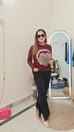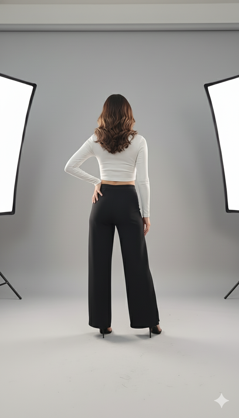 Elevate your style with these black high waist trousers featuring a trendy side slit design. Perfect for any occasion, the versatile black color will easily pair with any top. Make a bold statement with these sleek and modern trousers.
